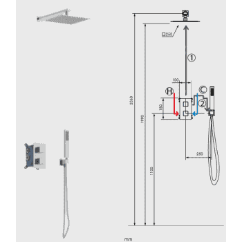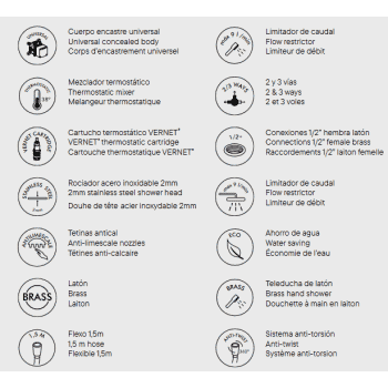Equipo ducha Cies empotrar termostático fabricado en inox