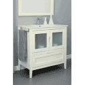 Incluye Mueble + Encimera de porcelana o Encimera Micro-Marmol con lavabo sobrencimera (Ovalo) / Espejo con marco madera / Columna Aux.