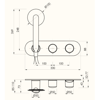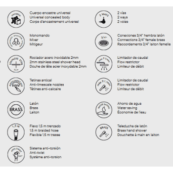 Monomando empotrado ducha modelo Dedal fabricado en latón de alta calidad con detalles labrado en maneta