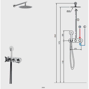 Termostática ducha Quadra en diseño cuadrado, fabricado en latón con terminaciones cromo brillo