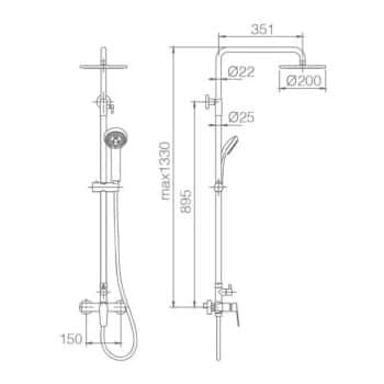 Columna ducha monomando modelo Bélgica fabricada en latón acabado en Cromo Brillo o Negro Mate