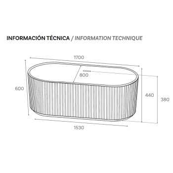 Bañera Acrílica Gaia 170cm largo x 80cm ancho x 58cm alto acabado en Blanco Brillo o Blanco Mate