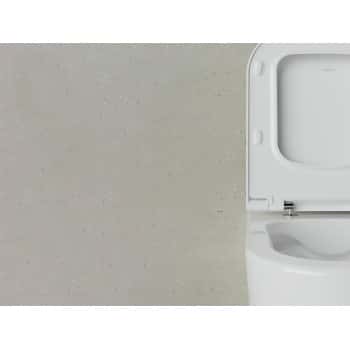 Tapa o asiento Duroplast Envolvente de alta resistencia,bisagras metálicas, protección antibacteriana y sistema ClipOff para desmontar sin esfuerzo.