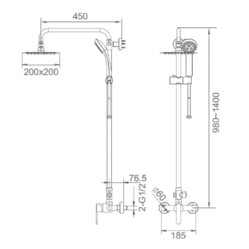 Columna ducha Bali monomando fabricado en latón acabado Cromo Brillo