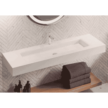 Encimera lavabo modelo Persa con faldón fabricada en Kryon con acabado en Blanco Mate
