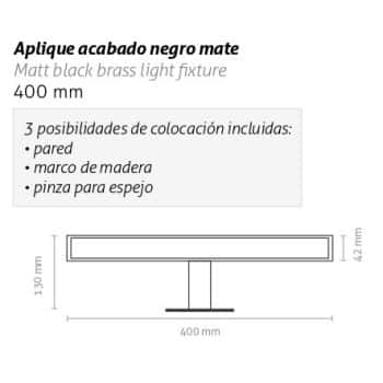 Aplique led para espejos de baño con terminación en negro mate