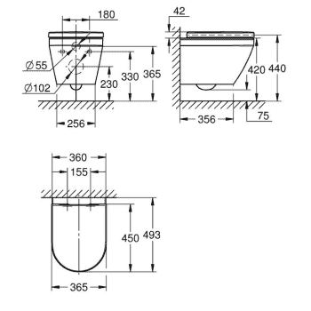 Inodoro suspendido porcelana blanco alpino Grohe modelo Euro 2.0
