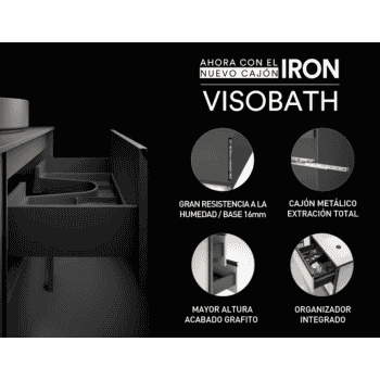 Mueble suspendido Ovalo para lavabo sobre-encimera fabricado en resina de carga mineral en exteriores y melamina en PVC de alta calidad para interior y cajones