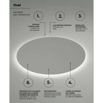 Espejo led modelo oval con bordes redondeados retroiluminado