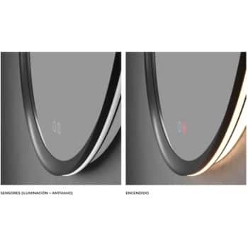 Espejo led modelo Torino redondo con marco metálico en 6 terminaciones de color y luz led doble en lateral marco como en parte trasera