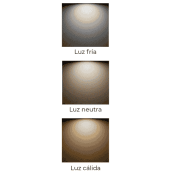 * Luz Fria 6500ºk, Luz Neutral 4000ºk y Luz Cálida 3000ºk (integrada y con posibilidad de seleccionar mediante botón)