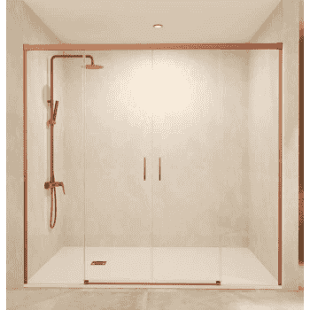 Mampara frontal STYLO corredera 2 hojas fijas + 2 hojas correderas, acabado Oro Rosa Cepillado