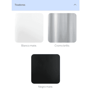 Acabados Tirador y Juego de Patas Cromo Mate, Blanco Mate o Negro Mate