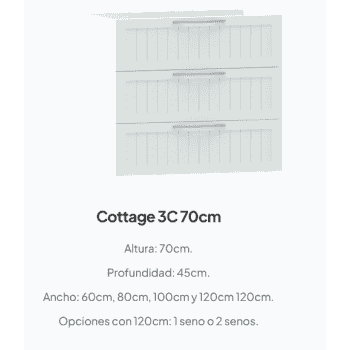 Medidas: 60/80/100/120cm 1seno centrado o 2 senos ancho x 45cm fondo x 70cm alto