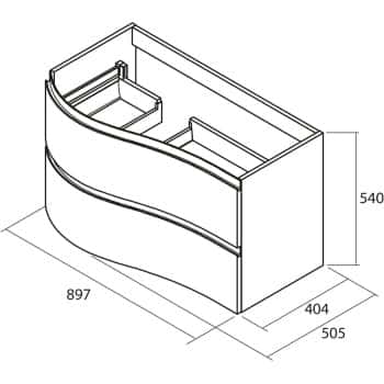 Conjunto mueble de baño Box suspendido con 2 cajones extraibles en 5 terminaciones con tirador uñero inglete