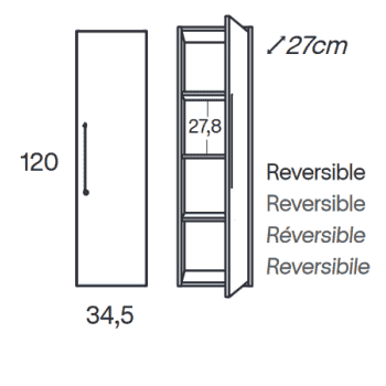Medidas Columna Auxiliar suspendida 120cm alto x 35cm ancho x 27cm fondo (Reversible, sirve tanto a derecha como izquierda)