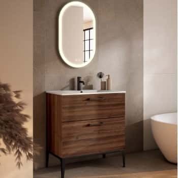 Conjunto mueble de baño Icon 2 suelo con 1 cajón extraible en 8 terminaciones de color y estructura en Madera Natural acabado Nogal