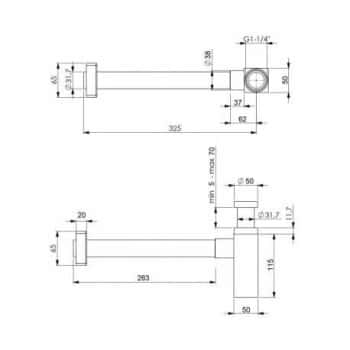Sifón desague redondo para lavabos vistos en varios acabados Mirtak