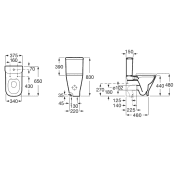 -Taza apoyada en suelo con salida dual (salida suelo o pared) para poderlo colocar en cualquier tipo de baño. Fijado con tornillería