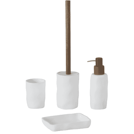 Juego accesorios de baño en Blanco Mate fabricado en polyresina (material similar en dureza a la cerámica) con terminaciones cromadas