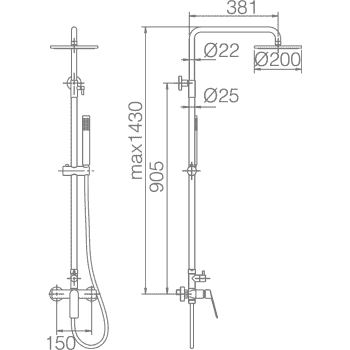Modelo con un diseño minimalista con detalles en formas cuadrada, la mejor opción de columna ducha en terminaciones rectas al mejor precio.