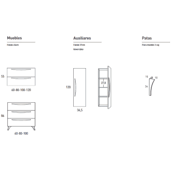 Medidas en 60/80/100/120cm ancho x 45cm fondo x 55cm altura.