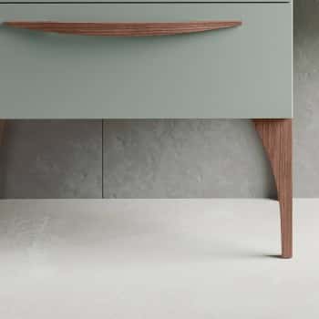 Mueble de baño suspendido modelo Arco 2 cajones extraibles en terminaciones en 5 terminaciones con tirador en Madera Natural y Juego de 2 patas delanteras en Madera Natural