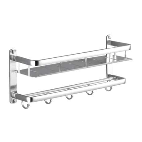 Estanteria baño adhesiva o tornilleria con toallero y perchas fabricada en aluminio