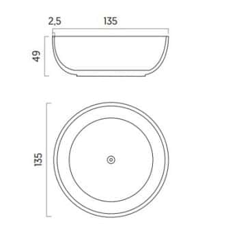 Una bañera de libre instalación de medida 135 cm de diametro fabricada con resinas minerales tipo Corian. esta superficie por naturaleza garantiza una bañera libre de bacterias y moho. Ofrece un acabado suave y aterciopelado al tacto, ofreciendo además un elegante diseño y una decoración elegante a tu cuarto de baño.
