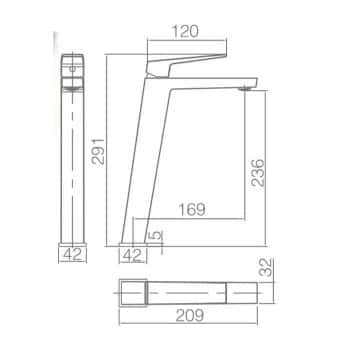 Monomando lavabo alto modelo Art fabricado en latón con diferentes acabados