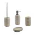 Juego accesorios de baño en Crema Mate fabricado en polyresina (material similar en dureza a la cerámica) con terminaciones cromadas