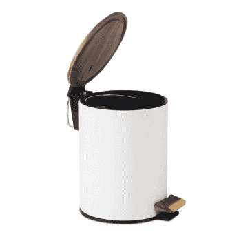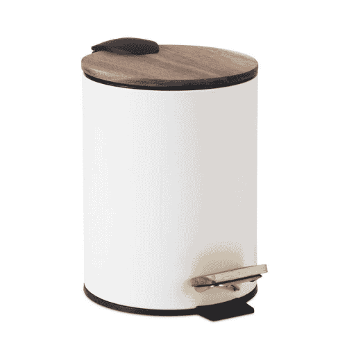 Papelera lacada en blanco mate con cubierta superior en madera acacia