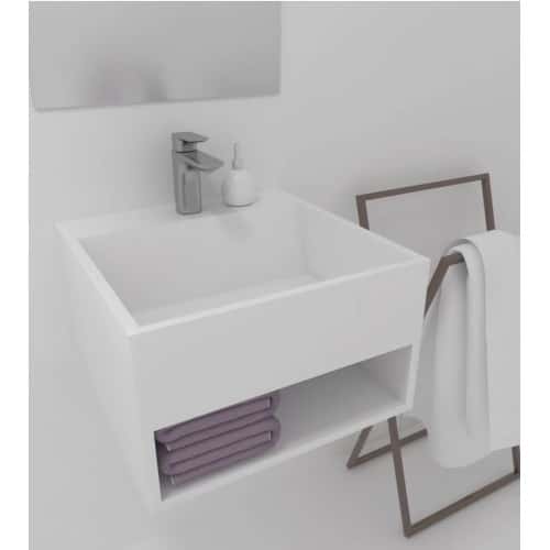 Grifo monomando lavabo blanco mate.
