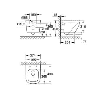 Encimera resina textura lisa para lavabo sobreencimera con faldón 10cm y anchura 46cm.