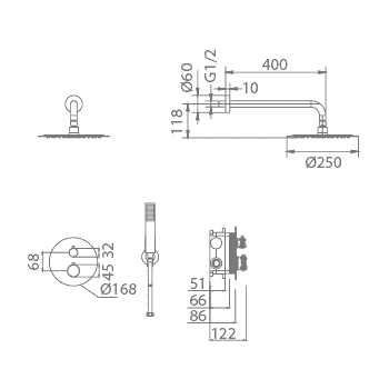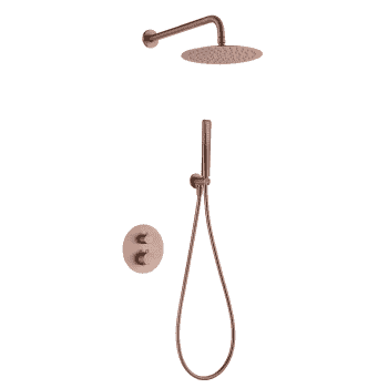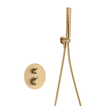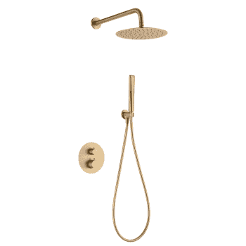 Brazo de ducha de techo integro en latón con embellecedores latón.