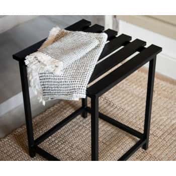 Taburete de baño en blanco y madera haya 32X30,5X47,5CM.
