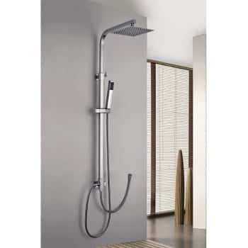 Rociador de acero inox. cuadrado 20x20cm, extraplano, cromado y antical.