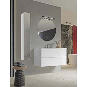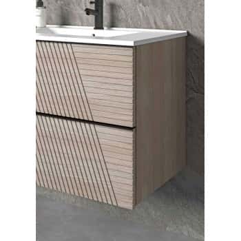 Taburete de baño en blanco y madera haya 32X30,5X47,5CM.