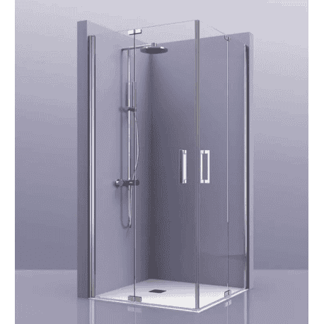 Mampara angular apertura en esquina con 2 fijos más 2 correderas.